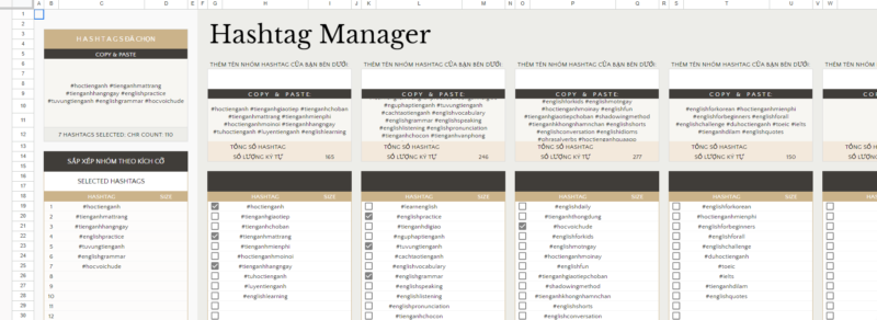 ✅ 19 tab được thiết kế sẵn, bao gồm: