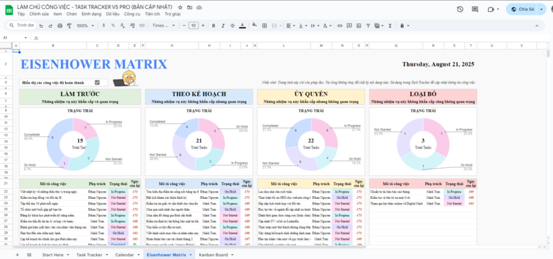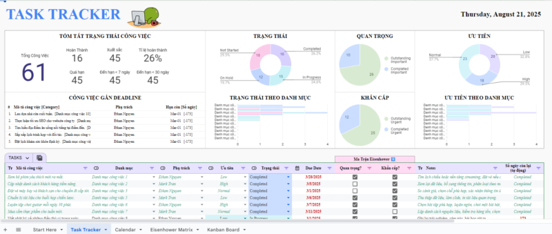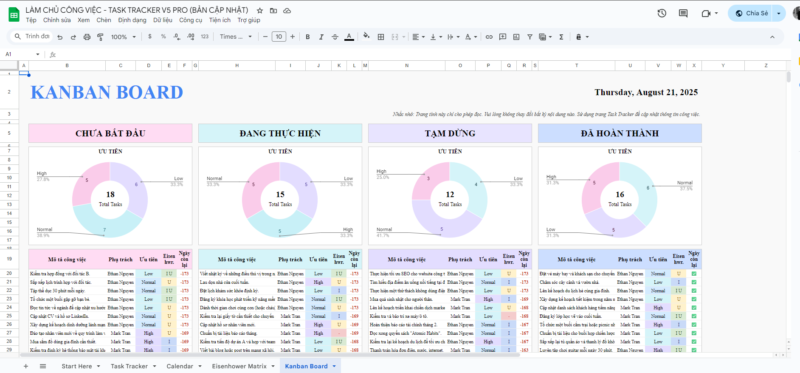 Bạn có từng cảm thấy quá tải? Công việc chất đống, deadline dồn dập, không biết bắt đầu từ đâu? Đừng để sự hỗn loạn cản bước bạn! Task Tracker Pro – bảng tính quản lý công việc thông minh dành cho Google Sheets sẽ giúp bạn sắp xếp mọi thứ gọn gàng, làm việc khoa học và đạt hiệu suất tối đa!