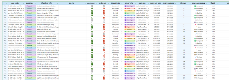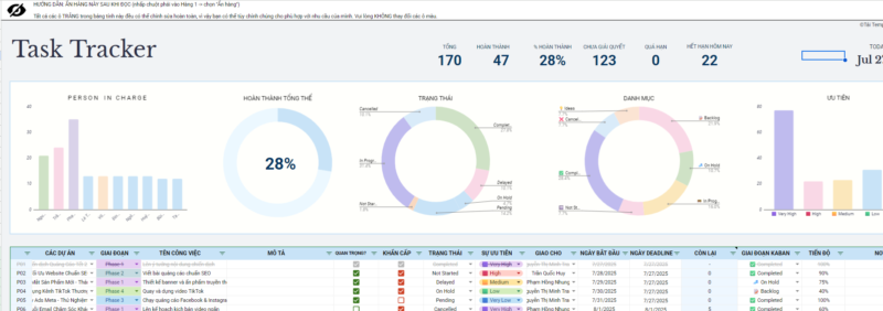 ✅ Theo dõi chi tiết từng công việc, mức độ ưu tiên và tiến độ hoàn thành