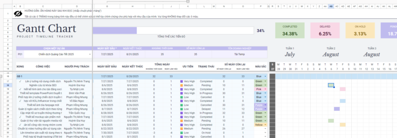 Gantt Chart – Biểu đồ tiến độ dự án