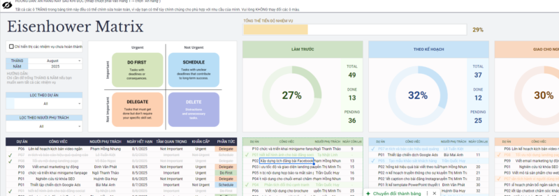 ✅ Quản lý dự án đa chiều với Gantt Chart, Kanban, và Eisenhower Matrix