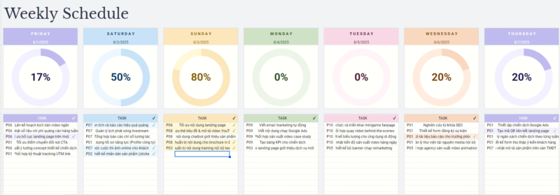 Weekly Schedule – Lịch làm việc theo tuần
