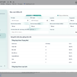 ✅ Báo cáo theo trạng thái: lọc và thống kê nhanh số lượng lịch theo từng trạng thái (ví dụ: dự kiến/đã diễn ra/hoãn/hủy…)