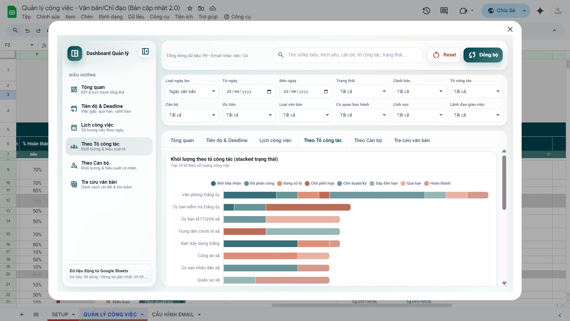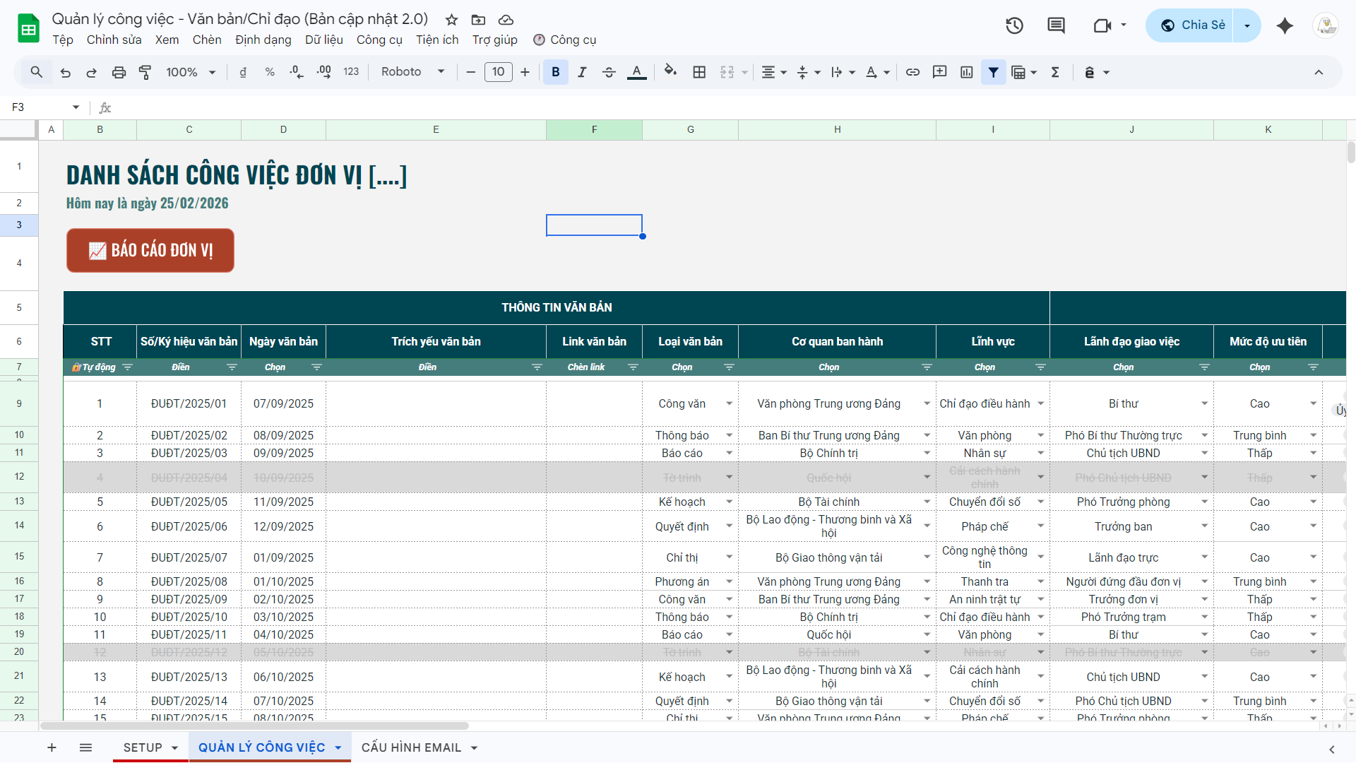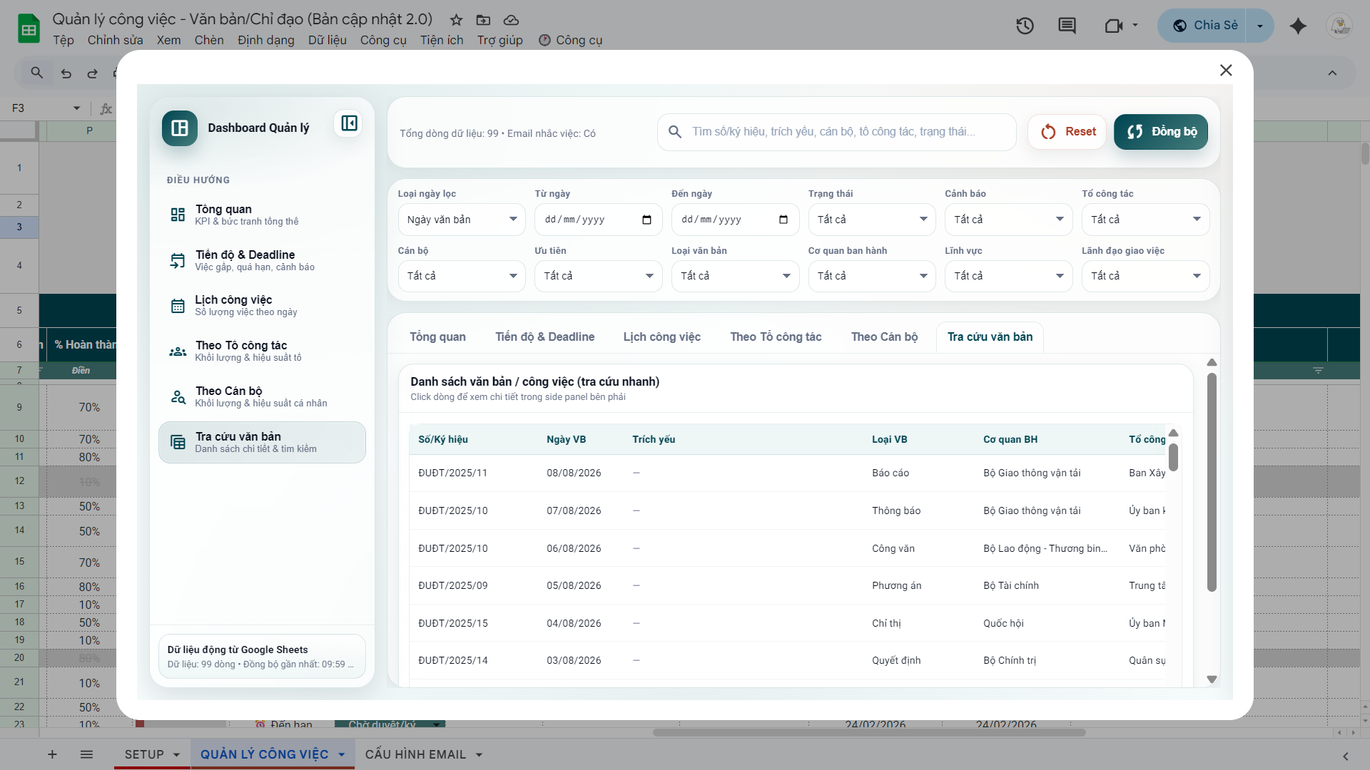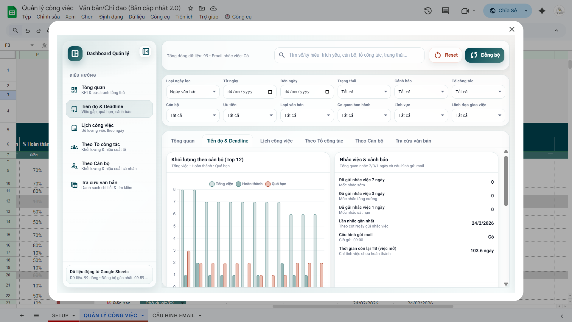 File Quản lý công việc, văn bản ý kiến chỉ đạo 2.0 (Google Sheets)