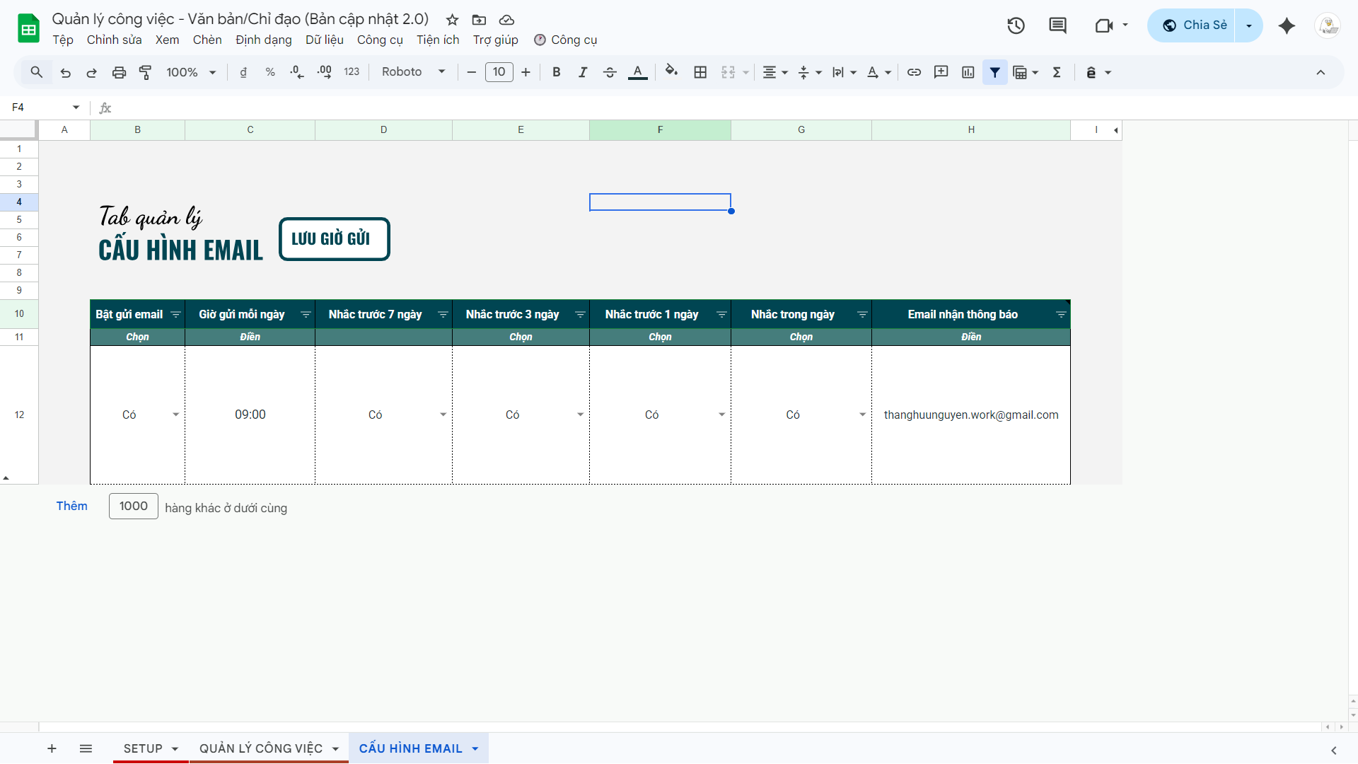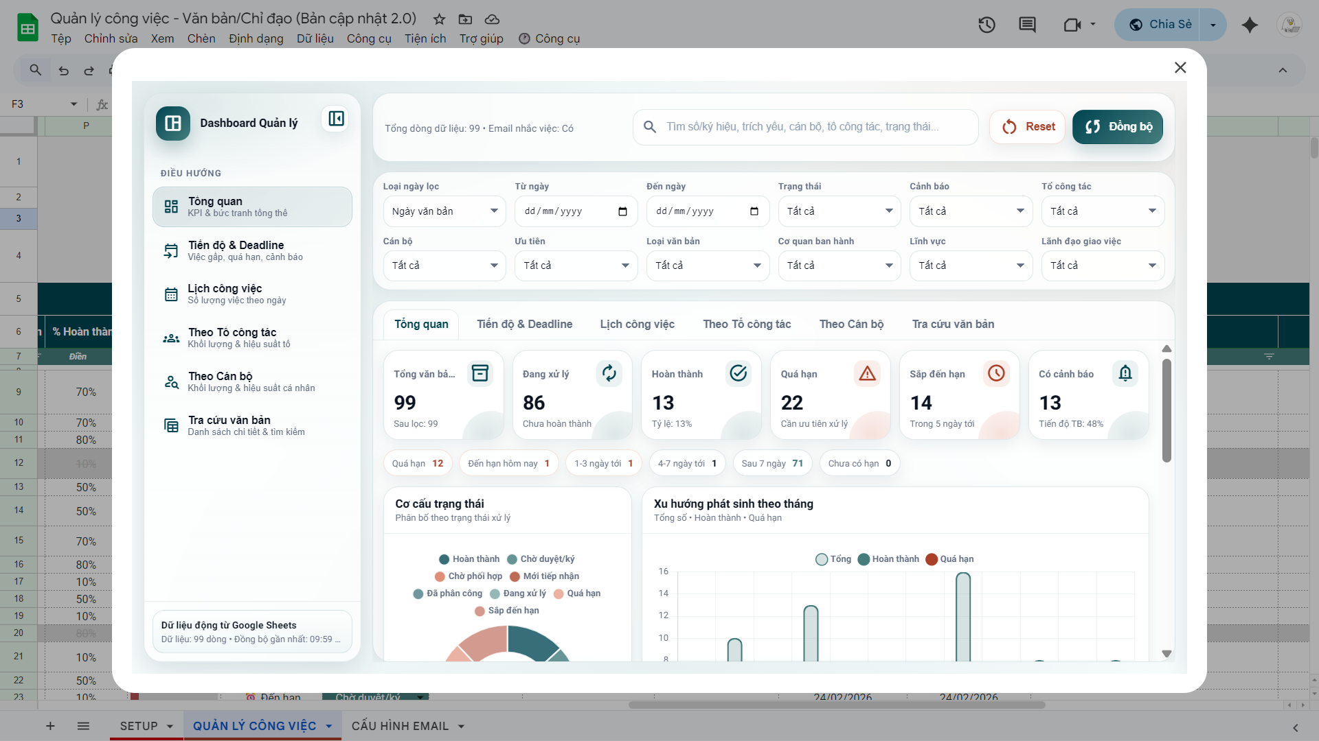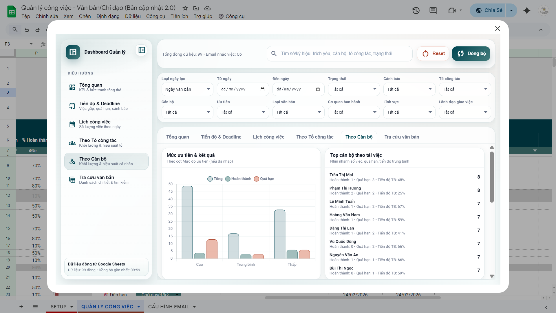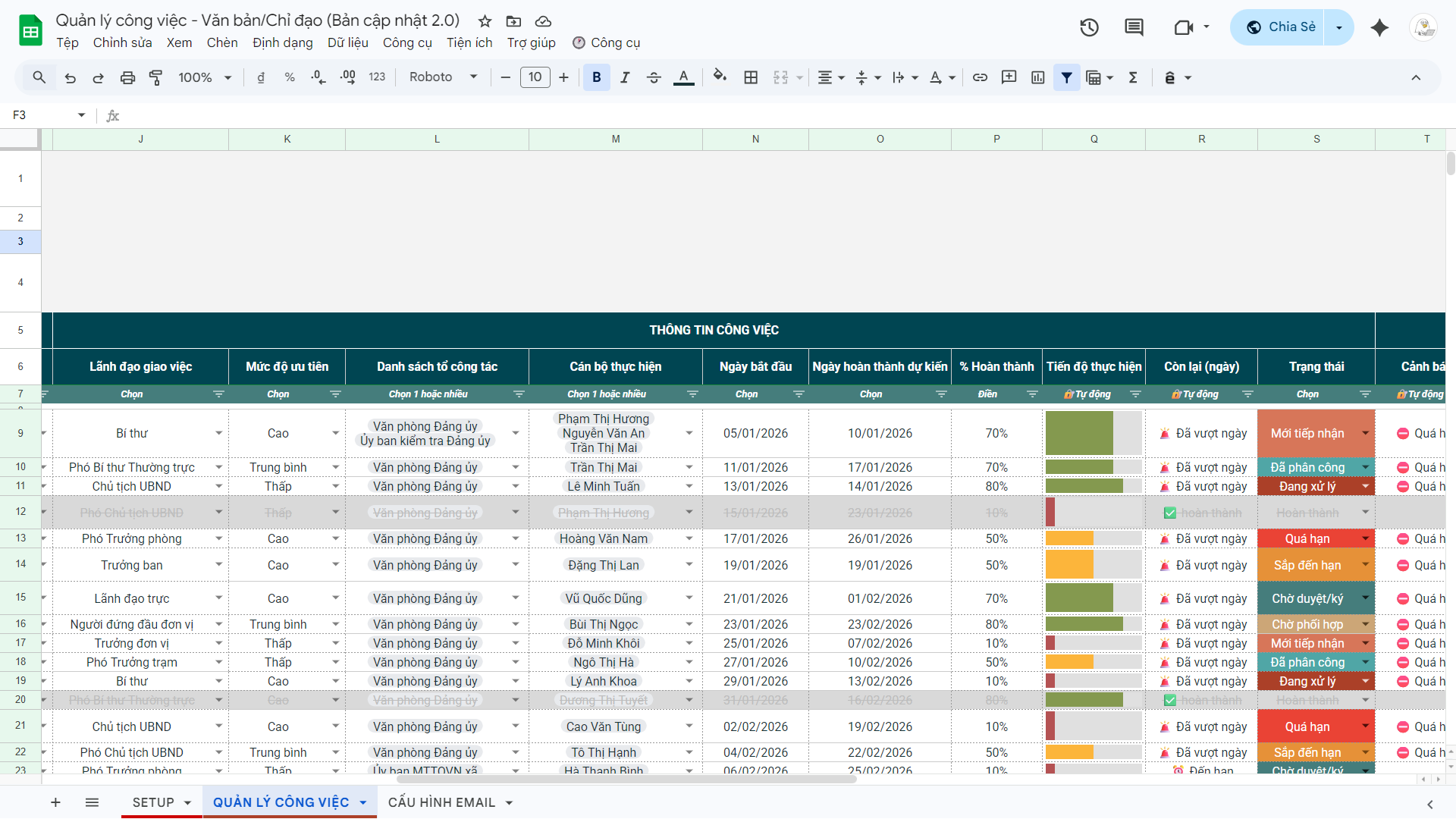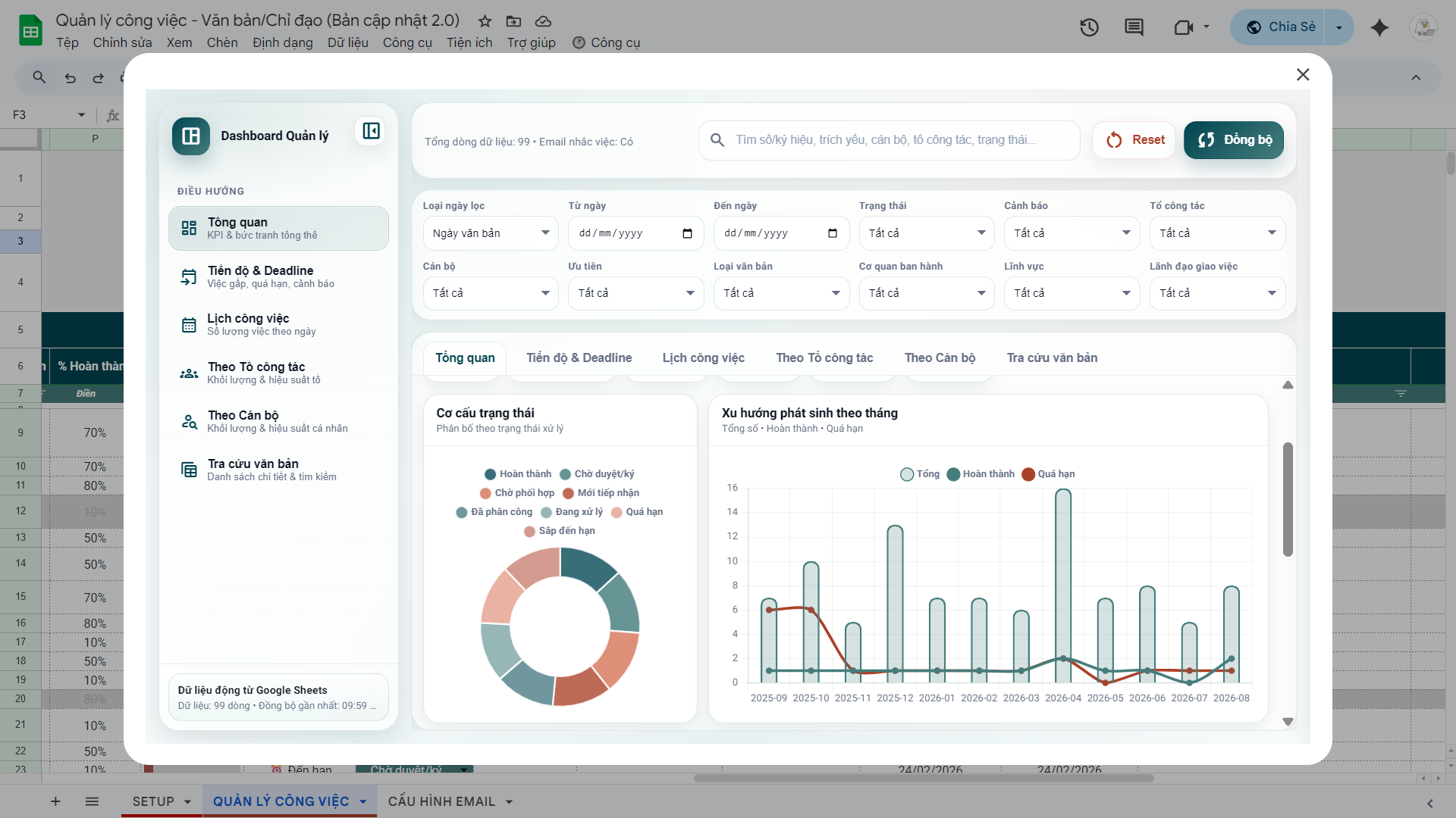 File Quản lý công việc, văn bản ý kiến chỉ đạo 2.0 (Google Sheets)