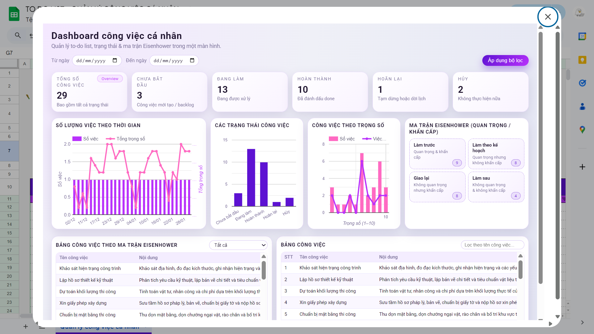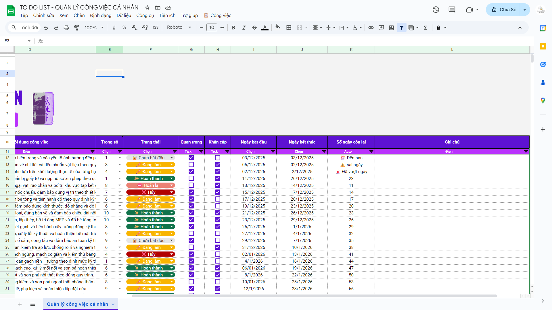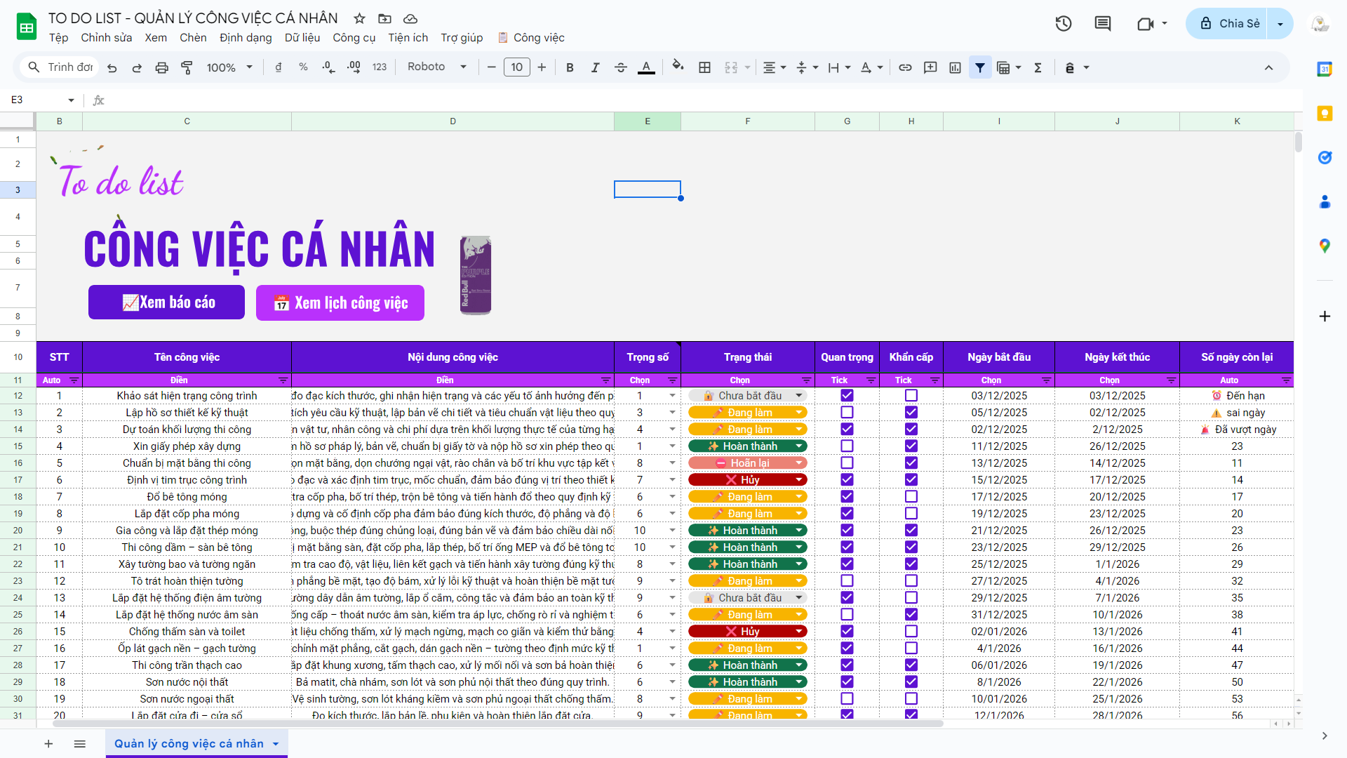 Google Sheet TO DO LIST – Quản Lý Công Việc Cá Nhân Giúp Bạn Bớt Stress
